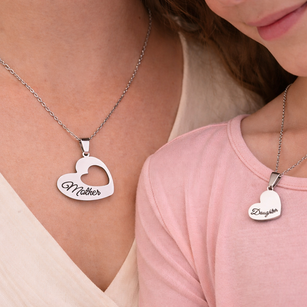 Komplet verižic Mama in Hči predstavlja posebno vez, ki jo delita mama in hčerka. Dva srčasta obeska – eden z napisom Mother in drugi z napisom Daughter – simbolizirata ljubezen, podporo in nevidno nit, ki povezuje družino.